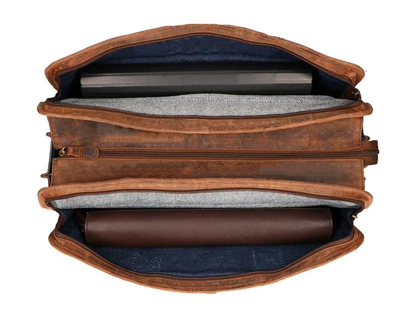 Deze robuuste leren laptoptas is gemaakt van hoogwaardig leer met een prachtige vintage-afwerking. Het natuurlijke patina en de warme bruine tint geven de tas een stoere, karaktervolle uitstraling die met de jaren alleen maar mooier wordt. De stevige handvatten en verstelbare schouderriem zorgen voor optimaal draagcomfort, of je nu onderweg bent naar kantoor, school of een zakelijke afspraak.