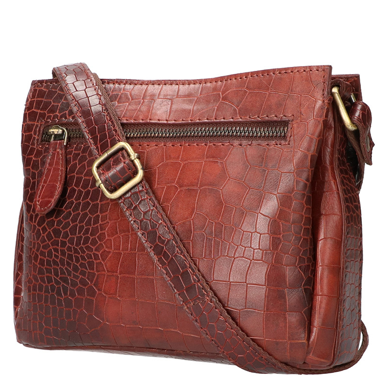 Roodbruine Leren Tas met Croco-Design – Elegantie met een stoere twist