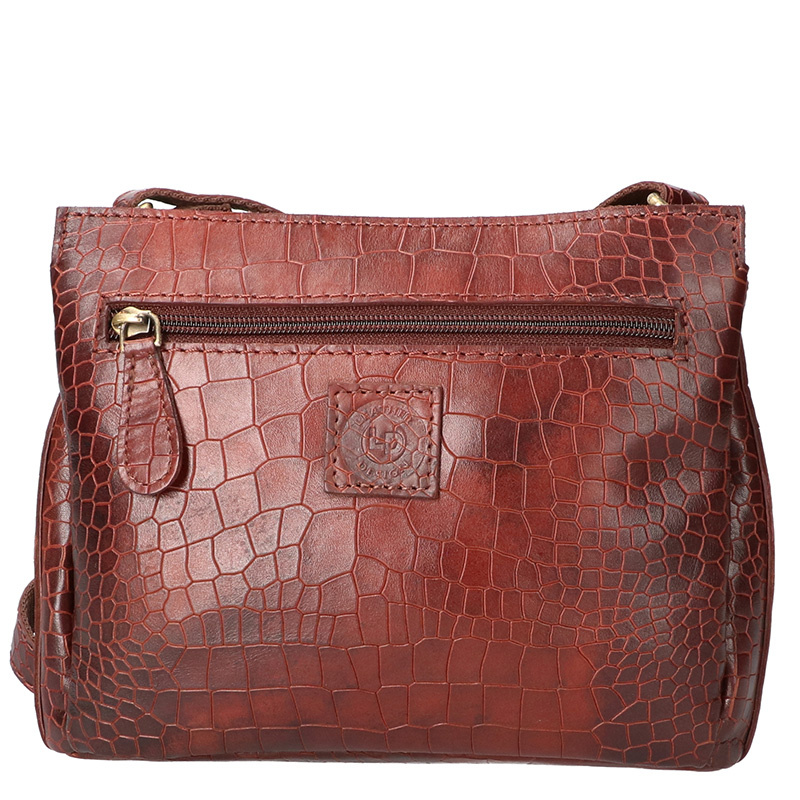 De verstelbare leren schouderband, afgewerkt met klassieke metalen details, zorgt voor comfortabel draaggemak tijdens elke dagtrip of stadswandeling. De croco-structuur geeft de tas een chique, modieuze uitstraling zonder te overdrijven—perfect voor wie houdt van tijdloze elegantie met een vleugje pit.