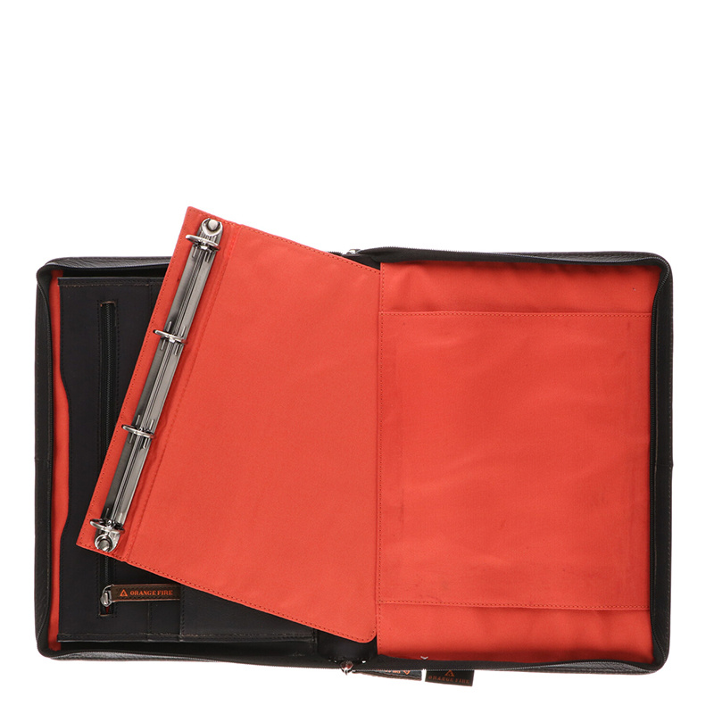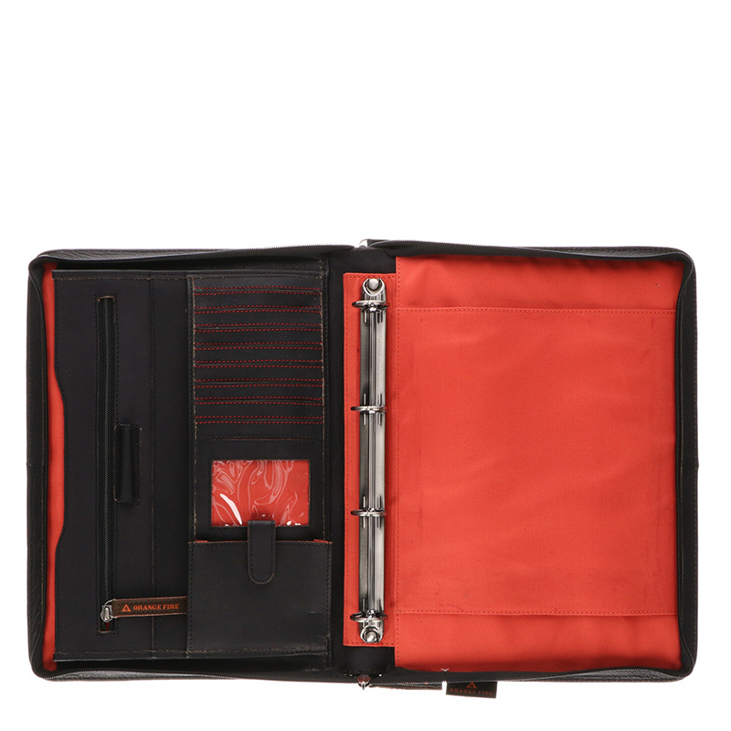 Met een hoogte van 34 cm, breedte van 24,5 cm en een diepte van 5 cm biedt deze map verrassend veel ruimte zonder log aan te voelen. De binnenkant is praktisch ingedeeld met 7 aparte vakken voor papieren of documenten, waarvan één afsluitbaar met een rits – ideaal voor belangrijke stukken. Daarnaast beschikt de map over een klein opbergvakje en vier pashouders, perfect voor visitekaartjes, ID of bankpasjes.